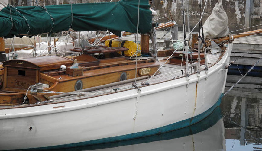 Nous avons terminé notre visite par un tour sur ces pontons où nous avons été séduit entre autres par VIOLA, BIDDY, CYRENE, SINBAD que vous retrouverez tous dans notre Registre. Et séduit par CARPE DIEM, un Billie Charlotte réplique au look très classique acceptée par le YCC.